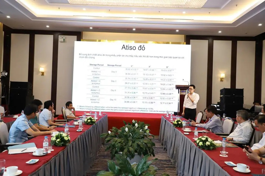 Chương trình đã giới thiệu và chia sẻ về những đột phá trong việc ứng dụng sâm Báo, tinh dầu và chiết xuất thực vật trong sản xuất phụ gia cho vật nuôi.