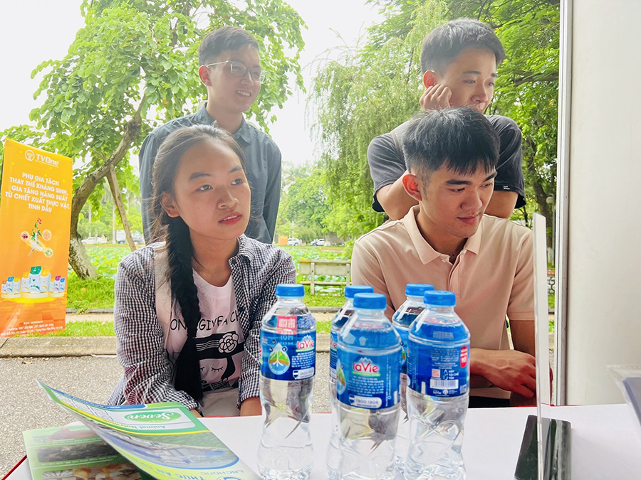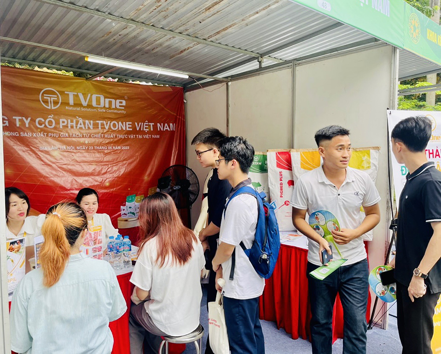 Ngay từ sớm, gian hàng tuyển dụng của TVOne Việt Nam đã thu hút nhiều sinh viên tới tham quan tìm hiểu. Điều khiến các bạn quan tâm đến công ty không chỉ do tiềm năng rất lớn của lĩnh vực phụ gia chiết xuất thực vật mà còn bởi tính nhân văn hướng tới cộng đồng, vì lợi ích cộng đồng trong định hướng phát triển của TVOne Việt Nam. Sau khi được đại diện công ty giới thiệu rõ nét hơn về TVOne và bộ sản phẩm, các sinh viên Học viện Nông nghiệp Việt Nam đã mạnh dạn chia sẻ nhiều hơn về điểm mạnh, điểm yếu của mình cũng như mong muốn được thử sức, học hỏi tại môi trường TVOne Việt Nam.