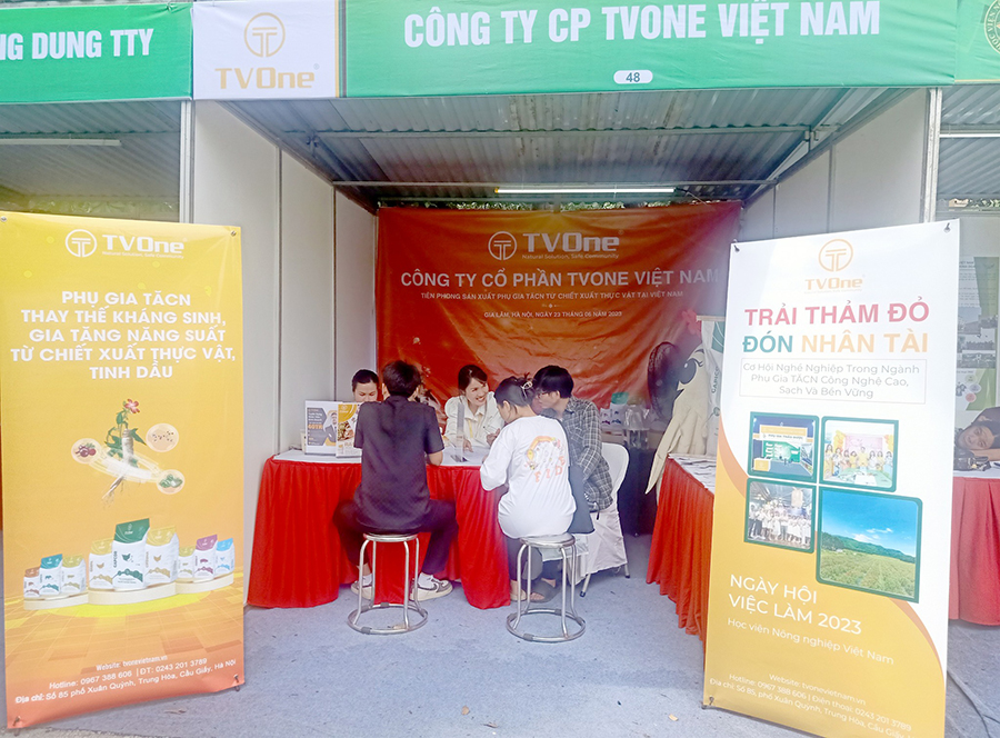 Thông qua Ngày hội việc làm năm 2023, TVOne Việt Nam mong muốn tạo điều kiện thuận lợi cho nguồn nhân lực trẻ chất lượng của Học viện Nông nghiệp được tìm hiểu và chủ động ứng tuyển các cơ hội nghề nghiệp hấp dẫn trong ngành phụ gia thức ăn chăn nuôi công nghệ cao, an toàn, bền vững từ đó có định hướng phát triển rõ ràng trong tương lai.