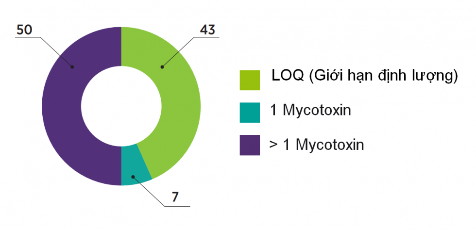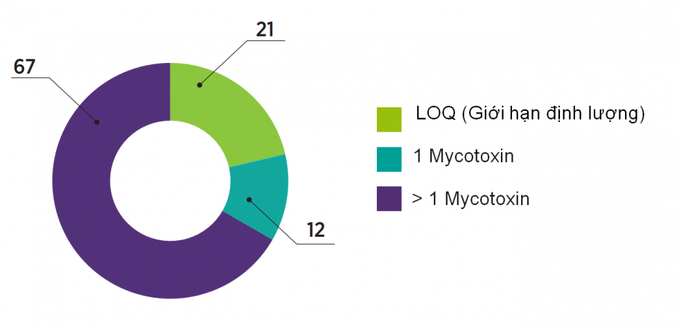 - 7% mẫu bị nhiễm một loại độc tố nấm mốc và 50% mẫu thức ăn chăn nuôi bị nhiễm nhiều loại độc tố nấm mốc.