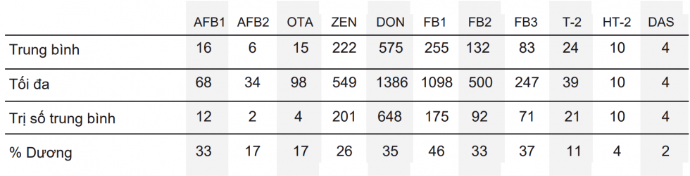 Table 2. Mức độ độc tố nấm mốc phát hiện (ppb) trong các mẫu ngô của Việt Nam vào năm 2021
