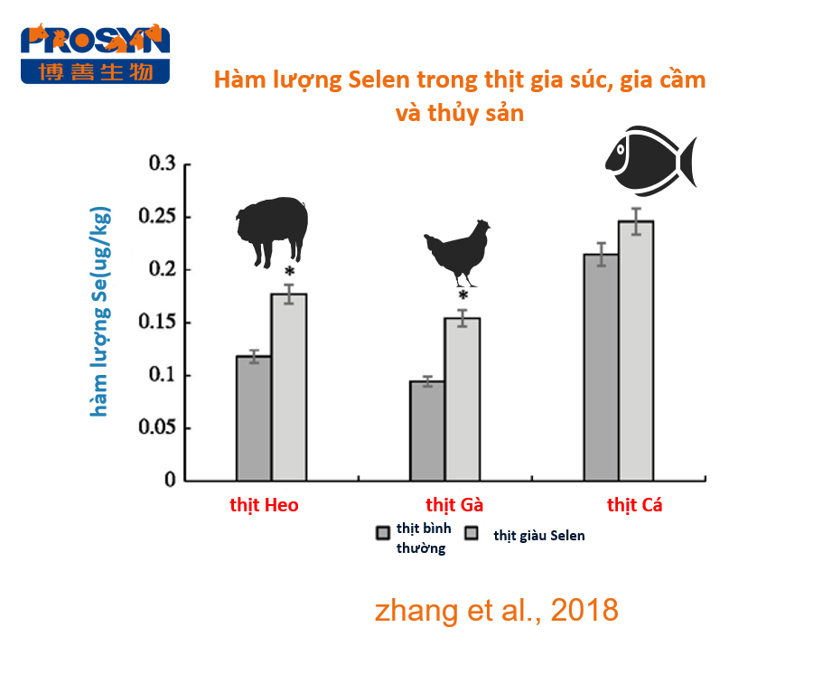 Vai trò chính của Selen là chống lại stress oxy hóa, nhưng nếu bổ sung lượng quá cao sẽ làm giảm khả năng chống oxy hóa. EU và Trung Quốc quy định rằng lượng natri selenate và natri selenite tối đa được sử dụng làm phụ gia thức ăn chăn nuôi là 0,50 mg/kg DM (Bộ Nông nghiệp, 2000). So sánh sự khác biệt về hàm lượng Selen trong cơ thể thì động vật sống dưới nước có nhu cầu Selen cao hơn so với động vật trên cạn.